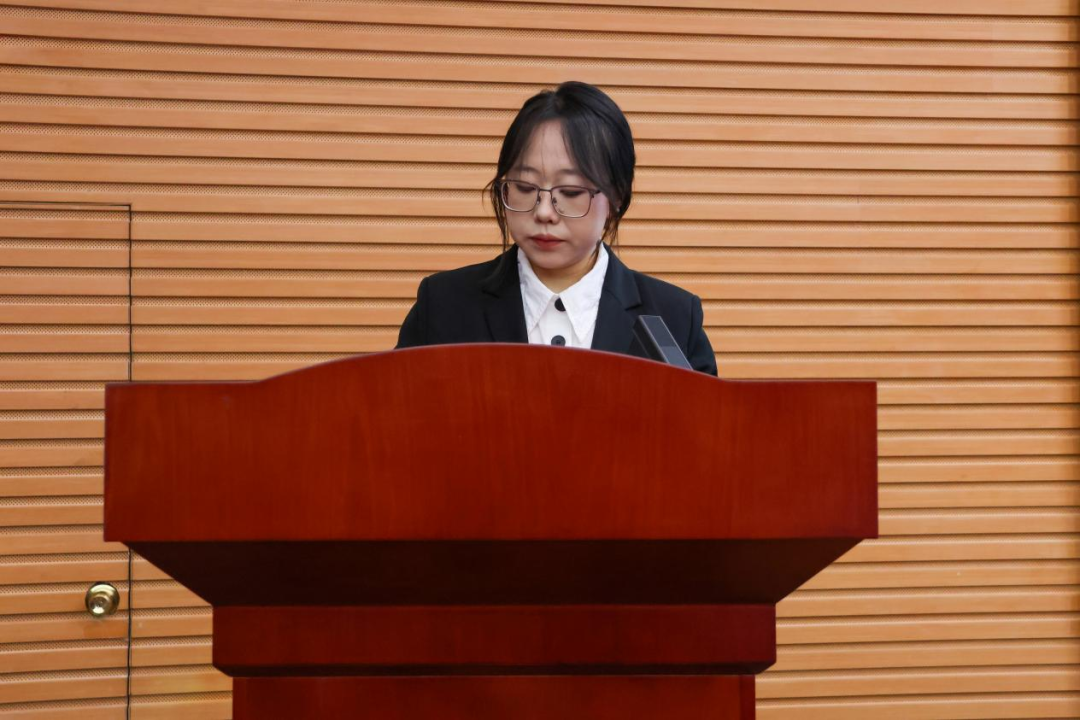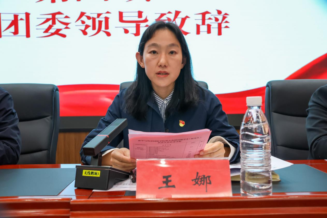 校团委宣传部部长王娜致辞,充分肯定了亿万28 团委、学生会在过去一年工作中取得的显著成绩,并寄语新一届团学骨干要珍惜平台、勇担使命,以更加饱满的热情和更加务实的作风,在服务同学成长成才中展现青春风采,在推动亿万28 发展中贡献青春力量。