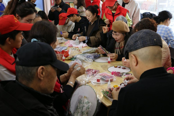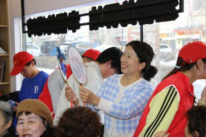 团扇制作环节中,老人们化身为“花艺师”,在素白扇面上细心粘贴干花,原本朴素的团扇逐渐变得色彩斑斓、生机盎然。大家互相交流、展示作品,欢声笑语中洋溢着喜悦与成就感。