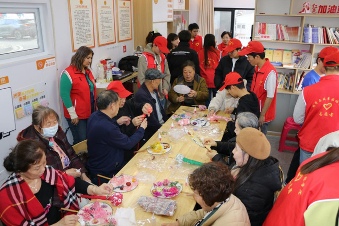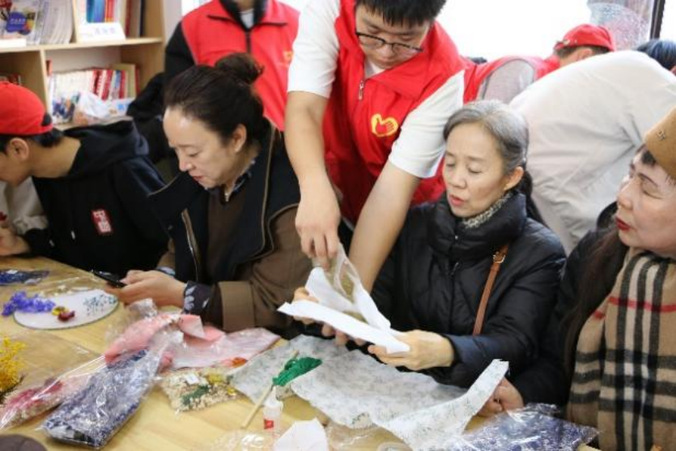 从构图到粘贴,从缝制到装饰,每一个环节都凝聚着参与者的专注与心意。志愿者们主动陪伴、耐心协助,在轻声交流与温暖互动中,传递出真诚的敬意与陪伴。